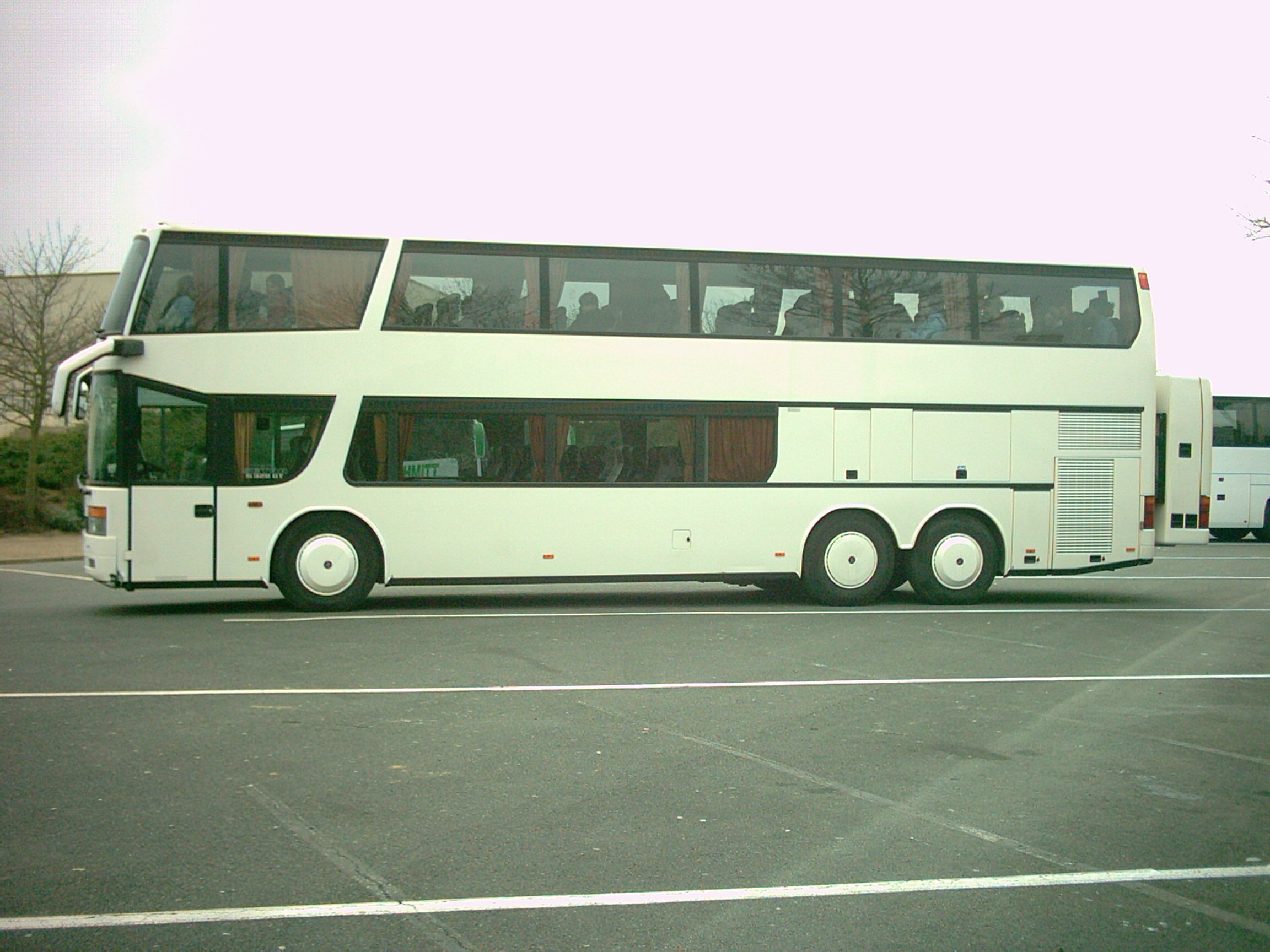 Der Fahrer im Iliae bin ich. Das Bild hat die Dame gemacht, die am Jetliner neben mir steht. Den gelben DD haben wir (die Dame, der Chef mit Chefin und ich) im Neoplanwerk in Stuttgart abgeholt.